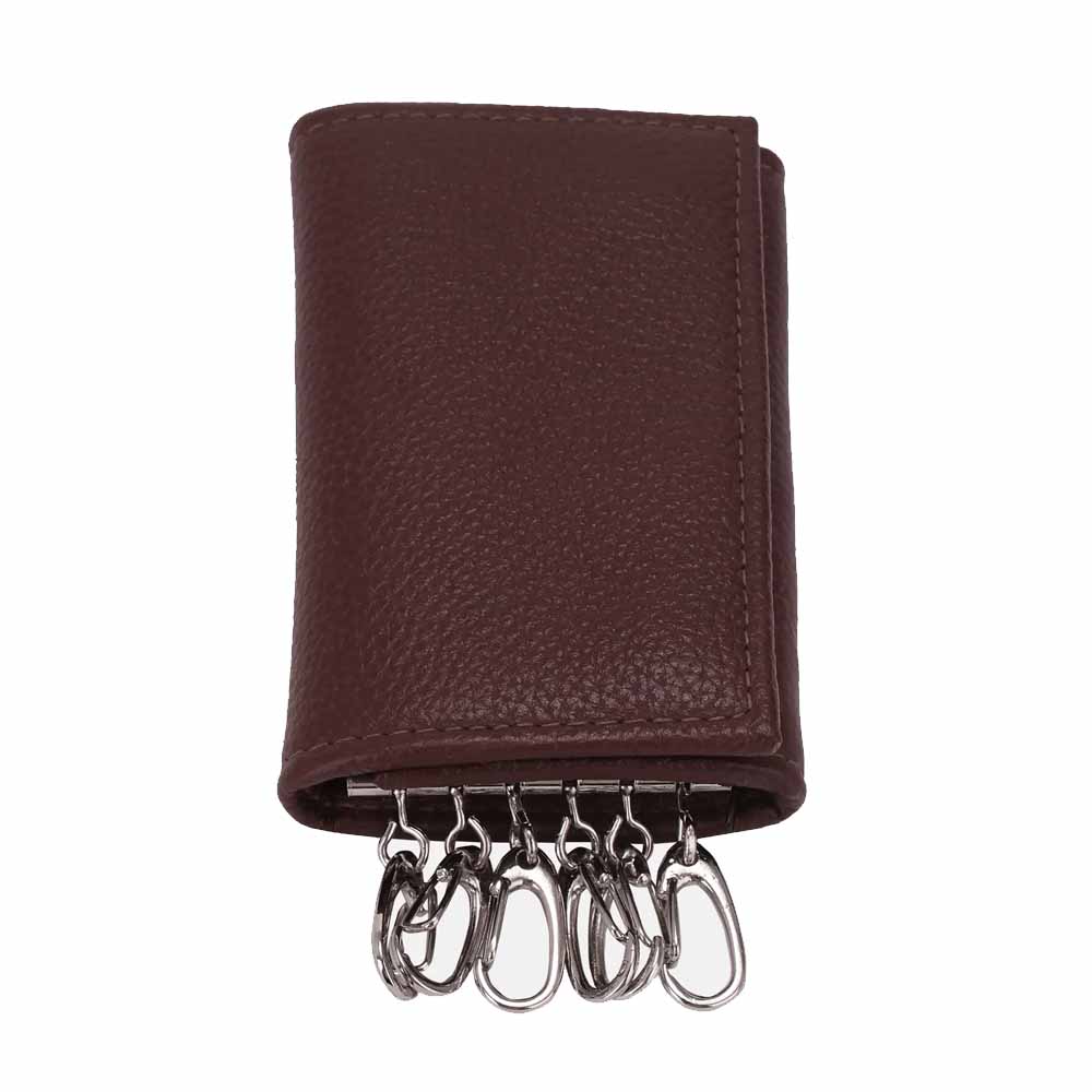 Men’s Pebbled Mahogany Leather Fold-Over Key Case (6 Hooks)