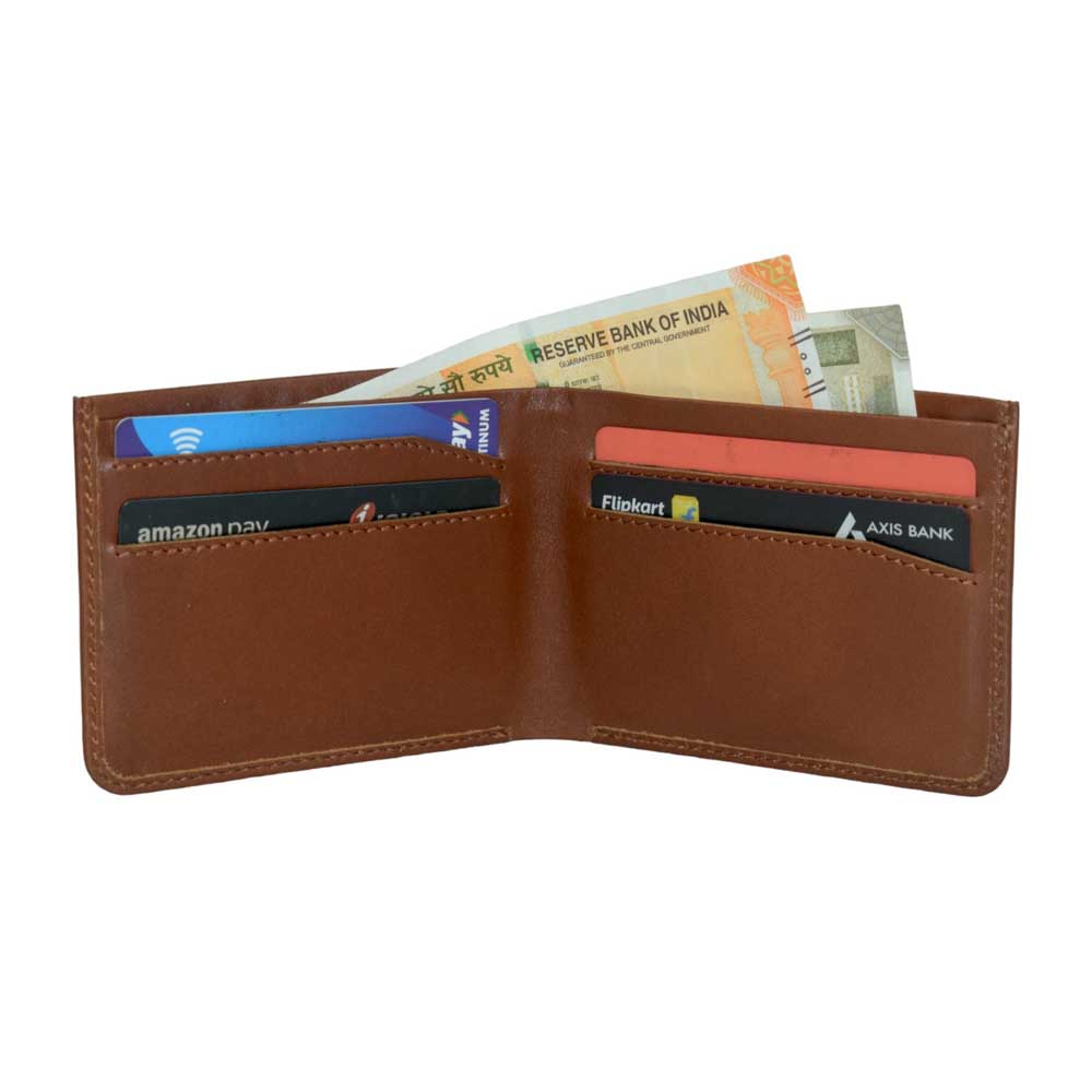 Men’s Tan Leather Bi-Fold RFID Wallet | Streamlined Profile