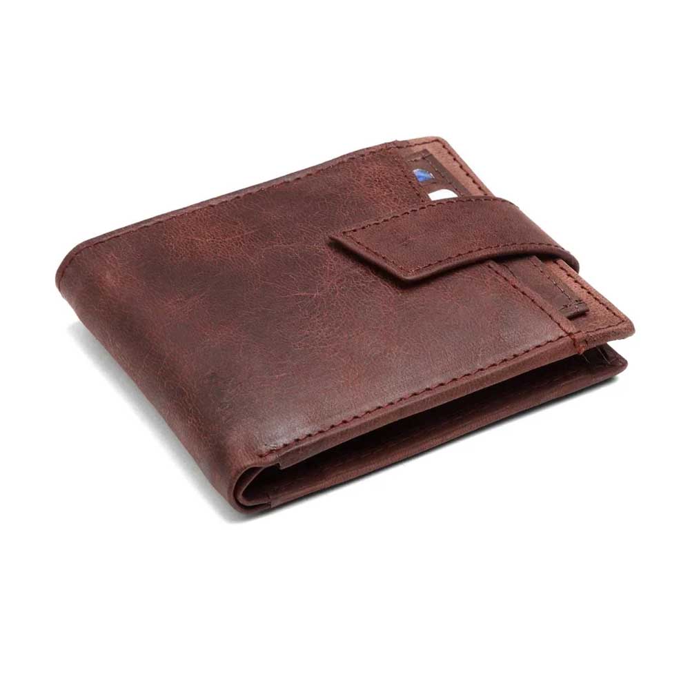 Made from genuine leather in a warm Cognac shade, the material has been treated to achieve a beautiful distressed, vintage look. The integrated snap-button closure ensures the wallet stays tightly folded and secure, keeping your cash and cards protected whether it’s in your pocket or a bag. Every mark and scuff tells a story, ensuring your wallet is truly unique and built to last.